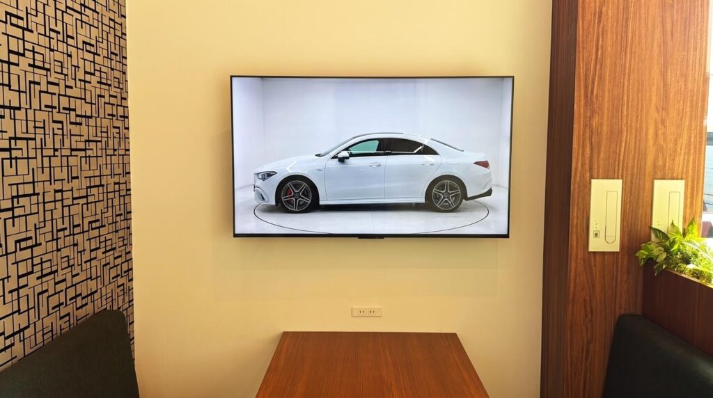 商談室のディスプレイにうつるターンテーブルのプレミアムカー