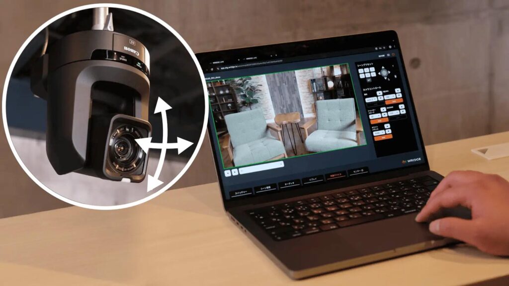 『WRIDGE RCA』(Remote Camera Application)は、TOMODYが開発・提供するLive配信オンラインスイッチングサービスWRIDGE LIVEのオプション機能です。NDI対応のPTZカメラを遠隔からコントロールし、複数カメラ映像のスイッチング切り替えを実現します。ブラウザ上で動作するため、PCがあれば特別な配信機材は不要で、操作に専門知識も必要ありません。