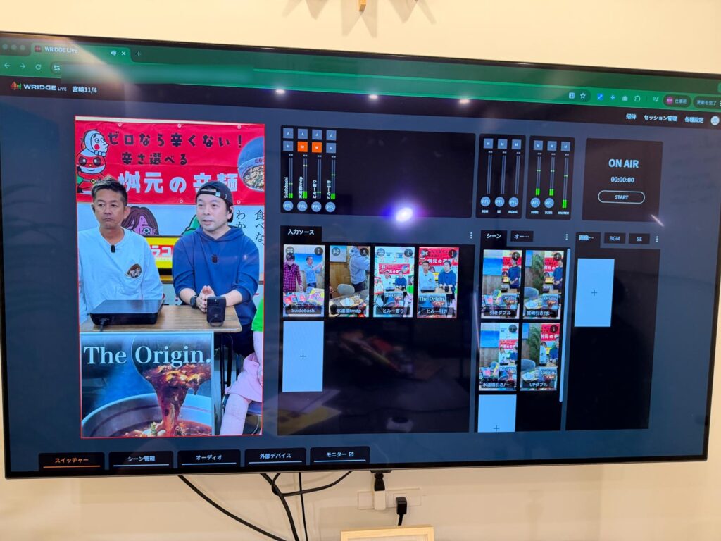 • カフェスペース(2F)と商談ルーム(1F)の大型モニターに同時配信