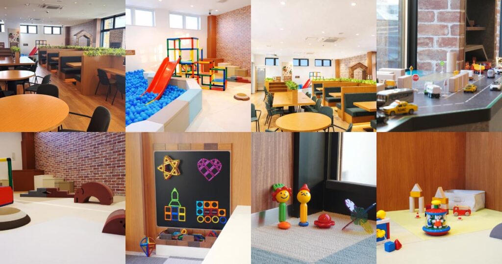 新社屋2Fに新設されるキッズカフェは、カフェスペースとキッズスペース(遊び場)を併設した施設です。キッズスペースにはボールプールやすべり台などの遊具を備え、お子さまが楽しく遊べる空間を提供します。