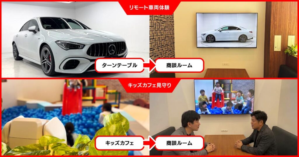 本社にある1台しかない高級車を、商談ルームや他の店舗からリアルタイムに体験