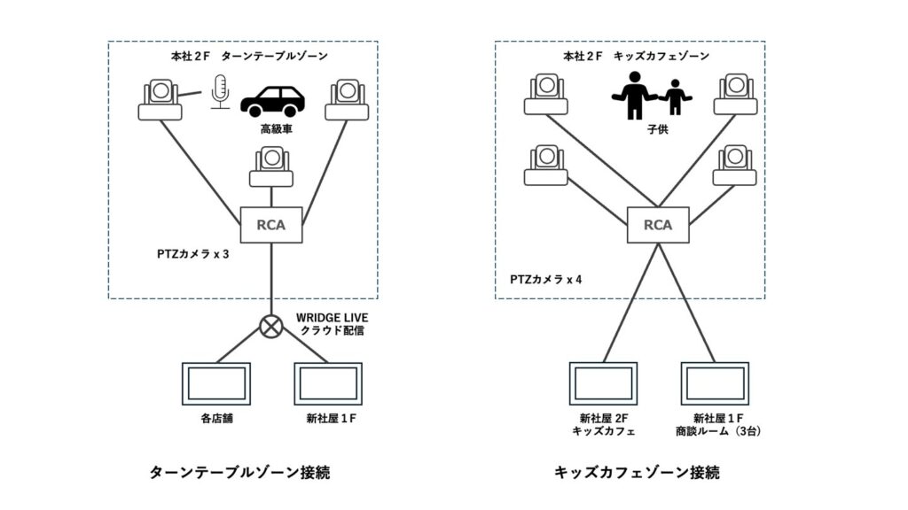 こうした「店舗をまたいだリアルタイム車両体験」と「キッズスペースの安心な見守り」という2つの課題を解決するために、新店舗 81FACTORY&CAFEにおいてTOMODYの映像配信ソリューション『WRIDGE RCA』が採用されました。